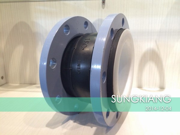 衬四氟橡胶接头在化工管道中比较常见,主要使用在强酸碱,强高温,强腐蚀的管路设备中,使用于.端环境中,.别是腐蚀性比较大的介质中,包括:输送腐蚀性气体的输送管、排气管、蒸汽管,轧钢机高压油管,飞机液压系统和冷压系统的高中低压管道,精馏塔、热交换器,釜、塔、槽的衬里,阀门等化工设备。
