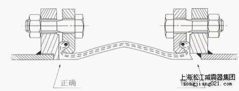 4、如可曲挠橡胶接头架空使用须配弹性支架,安装时螺栓要用对角法上紧。